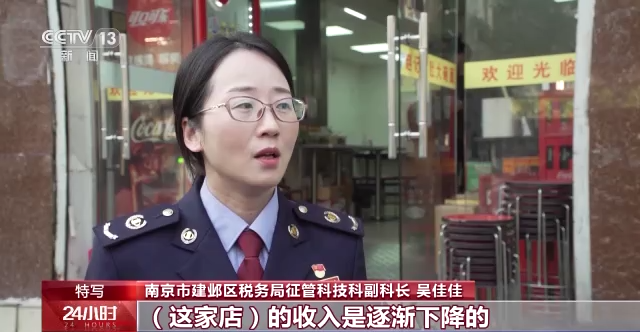 南京市建邺区税务局征管科技科副科长 吴佳佳:我们充分地实地核查了解到这家店的收入是逐渐下降的,然后对它的定期定额征收进行调整。近三年以来,这家个体工商户充分享受了我们的税收优惠减免,达到了近3万元。