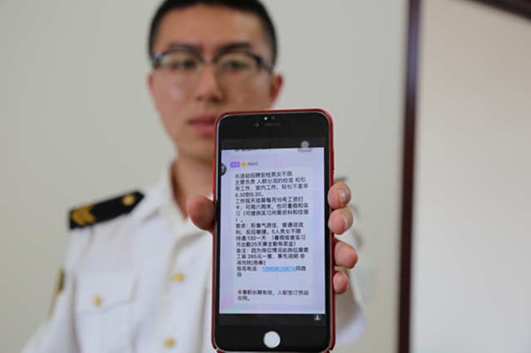 青岛长途站招聘兼职安检员,工资每天130元,还能提供实习住宿和全勤奖……近期在青岛酒店管理学院的多个QQ群中都有人在发布所谓长途站招聘兼职安检员的信息,优厚的条件让不少临近暑假有打工计划的学生们心动,尤其是见到了所谓的兼职劳动合同后更是深信不疑,然而在交纳了150元报名费还没来得及交后续的265元服装费,招聘方便没了踪影。无奈之下,6月9日交纳了报名费的小王和小李来到了距离最近的交运集团沧口汽车站了解情况,这才得知长途站的招聘由交运集团统一在官网上发布信息,根本不会有兼职一说,更不会收取报名费以及服装费,而所谓的兼职合同更是伪造的。