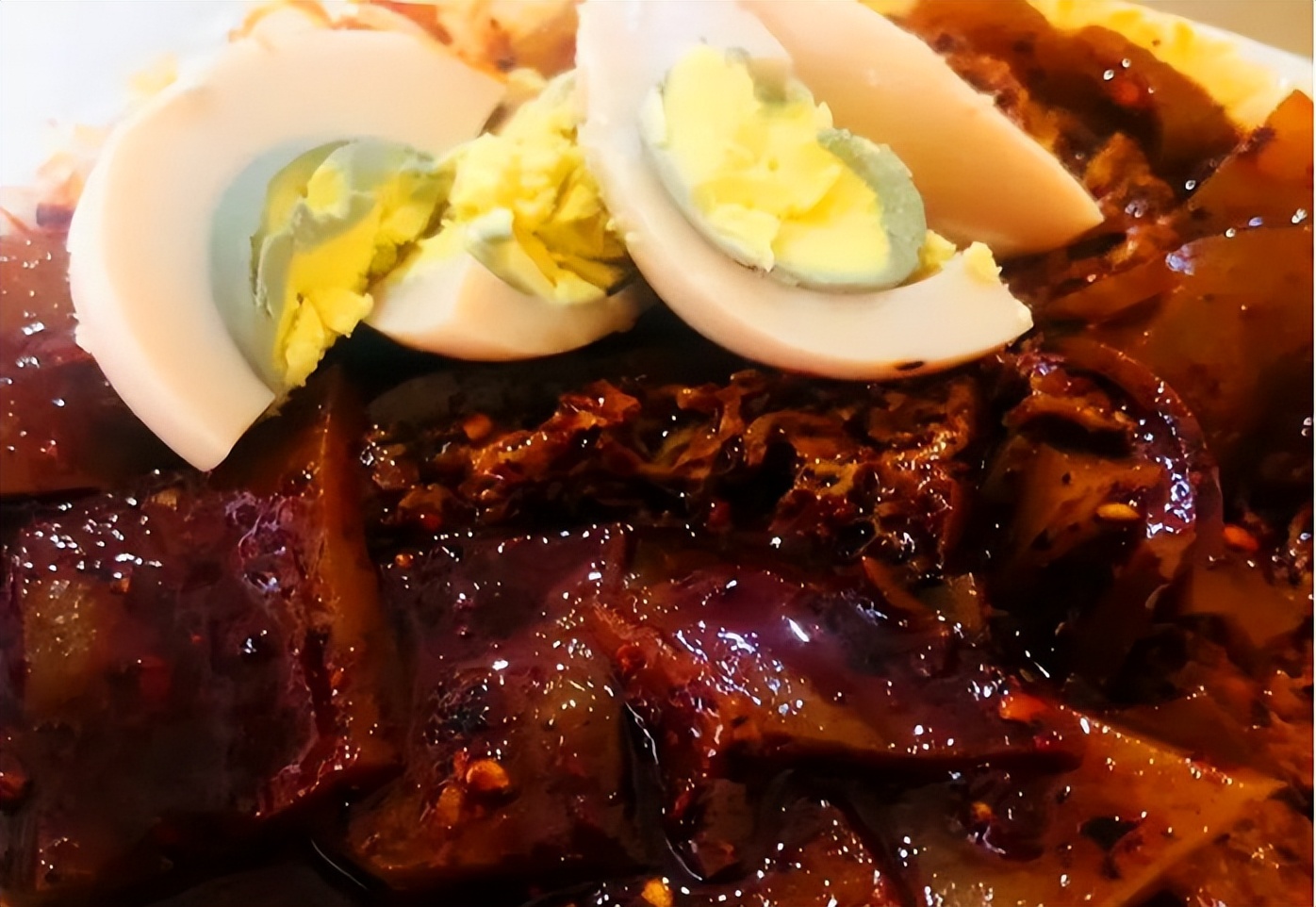 如果将茶叶蛋和热面皮搭配,那才叫好吃,茶叶蛋切成四瓣,黄是黄白是白,几种颜色放在一起,看一眼让人口水直流。爱意随口而入,温暖整个季节。