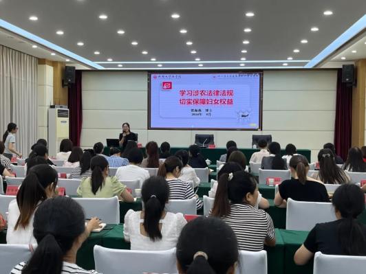 会议邀请省妇联天府小妹微普法栏目特聘教授、法学博士、四川省反家庭暴力知识普及基地工作人员、兼职律师贺海燕博士作了以《学习涉农法律法规 切实保障妇女权益》为主题的普法宣讲,贺博士分别从农村集体经济组织、农村土地、乡村振兴方面,对享有的权利和义务进行详细讲解,进一步提升妇女群众的法律意识和依法维权的能力。