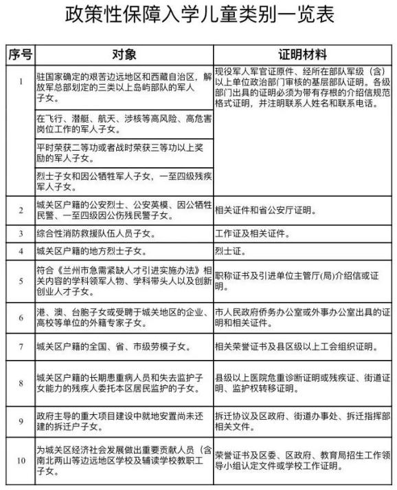 2.符合《2020年兰州市城关区小学招生政策性保障入学儿童认定标准》的儿童,由其父母或其他法定监护人在城关区小学入学网络申请系统上提出申请,经学校审核认定,城关区教育局小学招生工作领导小组复核后,即可按顺序原则自主招生;区委、区政府或教育局认定的政策性保障入学儿童,由教育局小学招生工作领导小组根据学位空额情况,统筹调配入学。