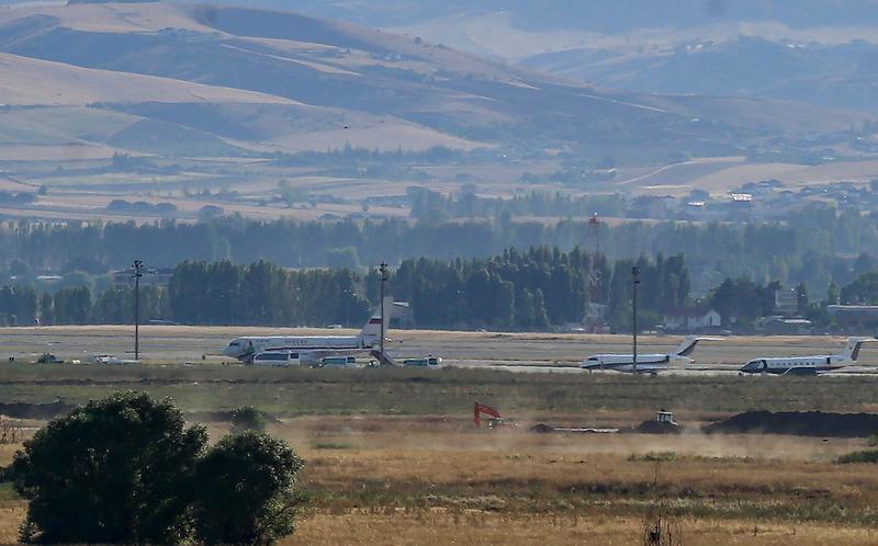 8月1日,一架俄罗斯飞机(左)停在土耳其首都安卡拉机场。