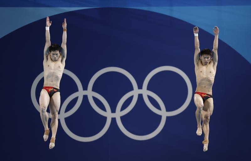8月2日,中国选手龙道一(右)/王宗源在比赛中。 新华社记者 张玉薇 摄