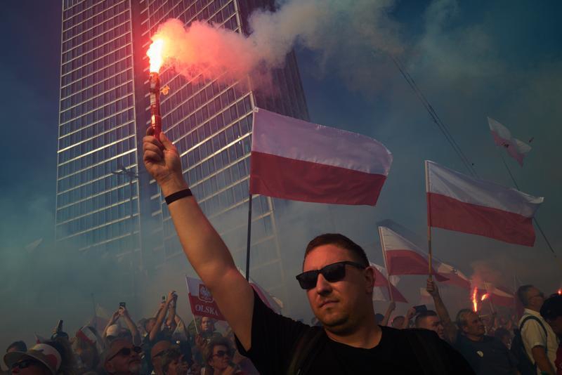 8月1日,人们在波兰首都华沙参加华沙起义80周年纪念活动。