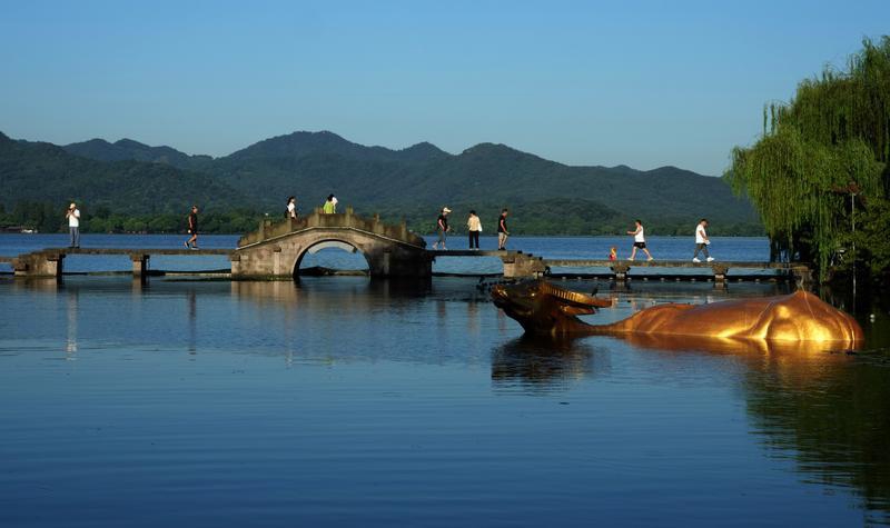 盛夏的早晨,来到西湖景区观光游览的各地游客络绎不绝。