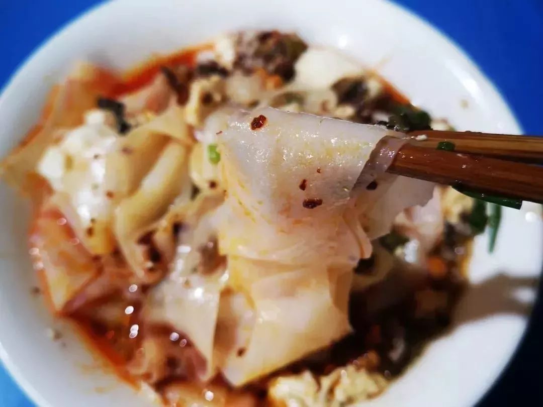 ��老东坡丝娃娃:面皮很有弹性,嚼劲足,位置在顾府街路西沿街二层。