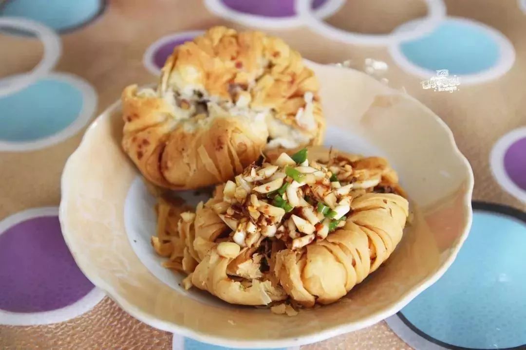 面皮和馅料都很有特色,皮可以一层一层撕着吃,馅料有多种口味,除了鲜肉包和三鲜包,还有付油包(猪肉渣+果仁)、洗沙包(豆沙+肉馅)这种新奇口味。