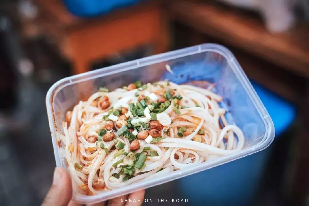 剪粉也叫卷粉,是把一大片薄薄的米粉卷起来剪断,拌入当地特有的辣酱和配菜,吃起来特别入味。