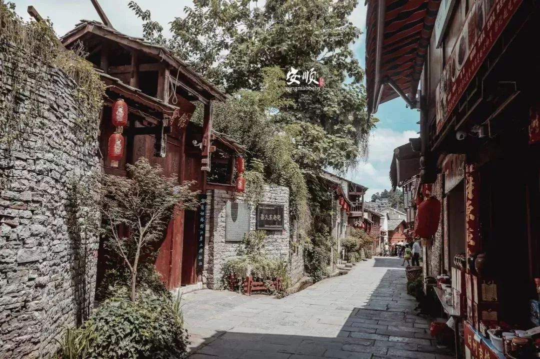 在安顺老城中,稀世石雕随文庙难得保存了下来,儒林路青石板老街还是旧日模样,身穿凤阳汉服的妇女自然地走在街上……