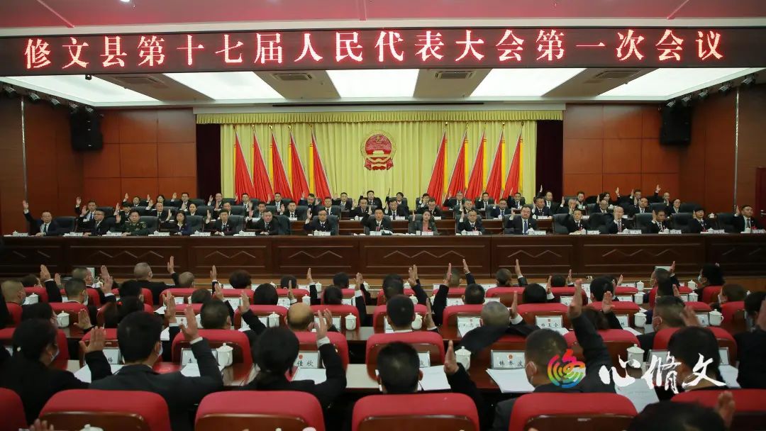 大会应到代表207名,实到代表203名,符合法定人数。大会选举产生修文县第十七届人民代表大会常务委员会主任1名,副主任6名,委员26名;县人民政府县长1名,副县长7名;县监察委员会主任1名;县人民法院院长1名;县人民检察院检察长1名;出席贵阳市第十五届人民代表大会代表28名。