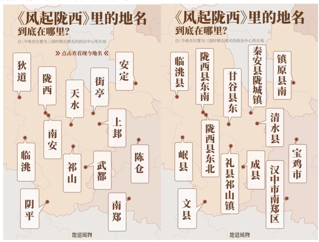 《风起陇西》主要的剧情地,分别在蜀汉重镇汉中南郑与曹魏重镇陇右天水 。