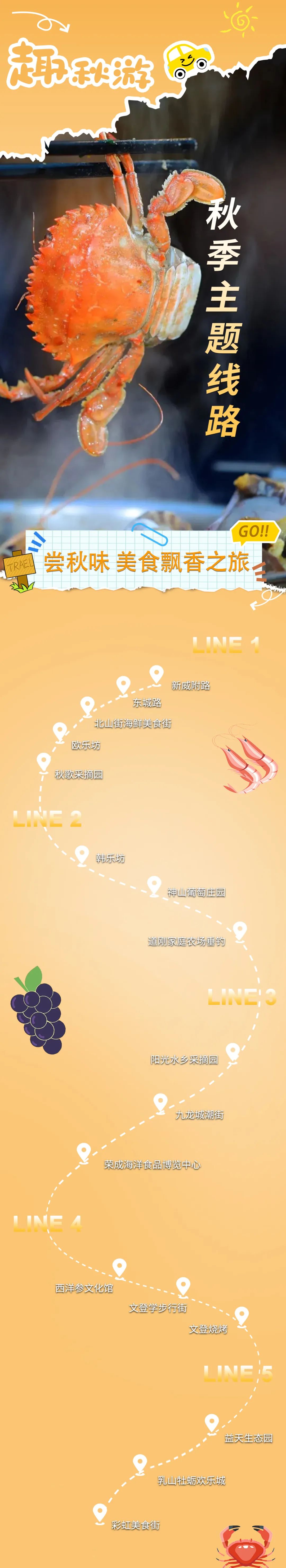新威附路——东城路——北山街海鲜美食街——欧乐坊——秋歌采摘园