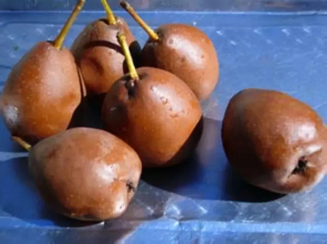 啤特果又称“黑果子”,土名“芽面包”,亦称“酸巴梨”,个大皮薄,肉丰多汁,芳香四溢,可口如蜜。啤特果摘下来后,在阴凉通风处存储半个月左右,果子逐渐由黄变黑、由硬变软,皮与果便能够顺畅剥离,一口咬下,果肉微微的甜、微微的酸,软香可口,这时就是名副其实的黑果子,即可食用。