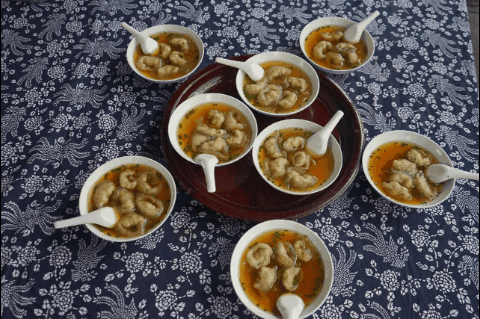 煮扁食的过程中,酱油、猪油是必不可少的,两者相会妙不可言,吃了这一碗,便不虚此行了。