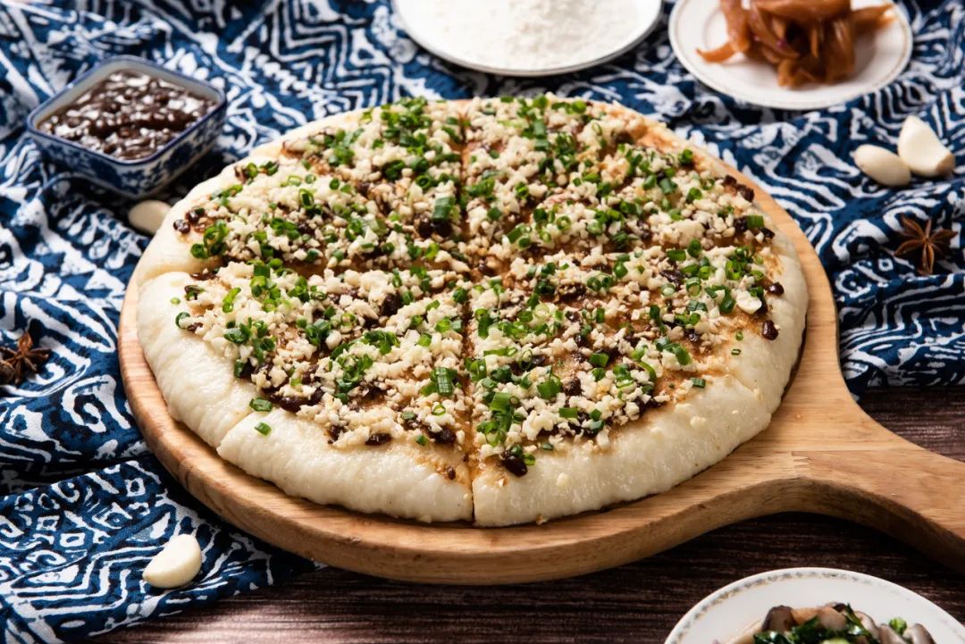 磐安大蒜饼历史悠久,因形似披萨,具有“中式披萨”之称。