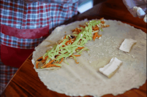 方前的小吃十分多样,若细细吃起来,能足足吃上个把星期,然而有一样是怎么也要尝尝的——饺饼筒。