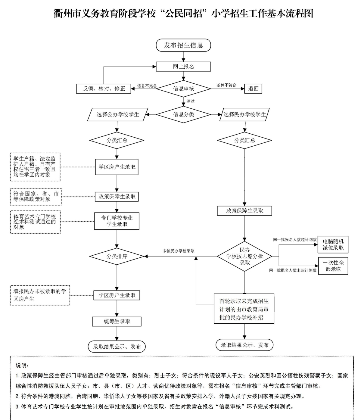 1.衢州市义务教育阶段学校“公民同招”小学招生工作基本流程图