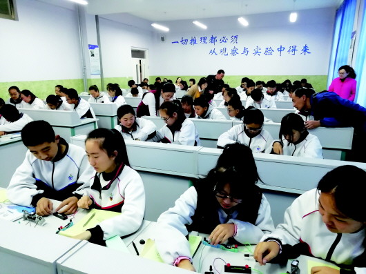 近年来,肃州区深化课程改革,落实“减负”规定,探索高效课堂模式,加强会考联考管理,学生的综合素质显著提升,全区教育教学质量稳步提高。酒泉市新苑学校学生上实验课。周爱玲 摄