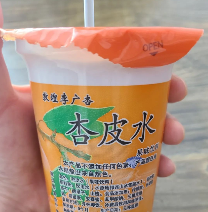 如果不想喝茶,还可以试试敦煌人传统的杏皮水。西北苦夏,在夏日炎炎高温中,用干杏皮与冰糖煮水,煮到水色变得深沉,杏皮逐渐软糯时,过滤掉杂质,就是一杯酸甜相适,喝后满口生津的杏皮水。