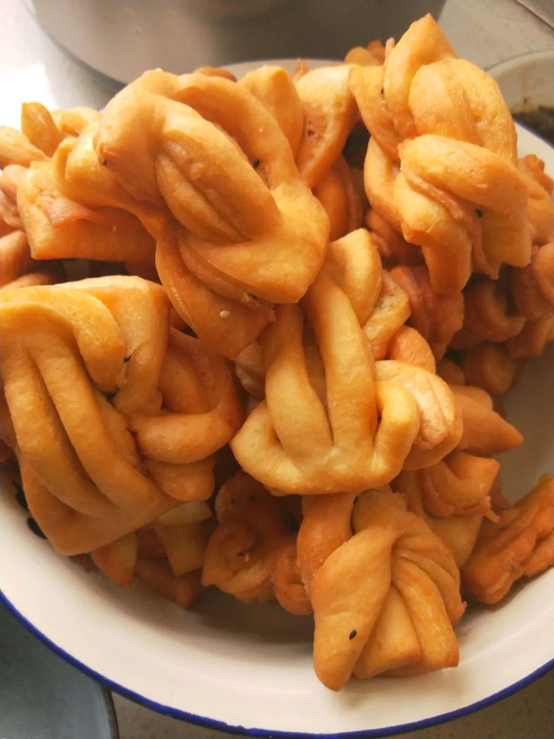 不同于江南水乡的精致甜点,“师承”中亚的甘肃甜食重口粗放得多。支起滚烫的油锅,开水烫面加入白糖,将和好的小面团擀成面皮,包上红糖捏紧、拍扁,下锅炸成金黄色,就是最原始的烫面油糕。热乎乎的油糕,外表被油脂充分加持咬着香香脆脆,内馅却保持着烫面特有的软甜,在生活条件不好的年代,是能上桌待客的存在。