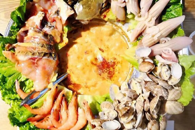 三亚海鲜火锅是海南一带的传统风味名肴,属于海南菜。此火锅取材三亚本地海鲜,虾、蟹、螺、贝、鱼应有尽有,锅底加入姜片、蒜苗等调味,旨在保留原汁原味,尤其凸显海鲜特有的清甜和营养,辅以各家秘制蘸酱,尤其美味。三亚海鲜火锅于2012年被三亚旅游协会评为“三亚十大名菜”。