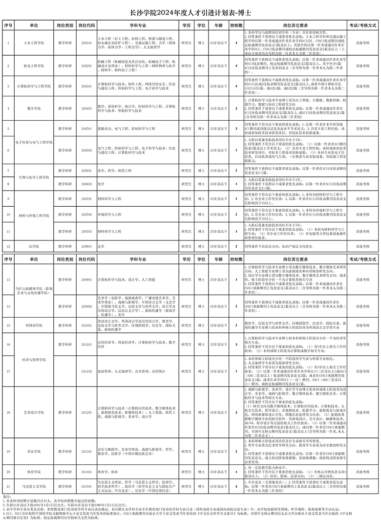 2.各岗位的考核方式详见附件1:《2024年长沙商贸旅游职业技术学院公开招聘教师岗位表》。