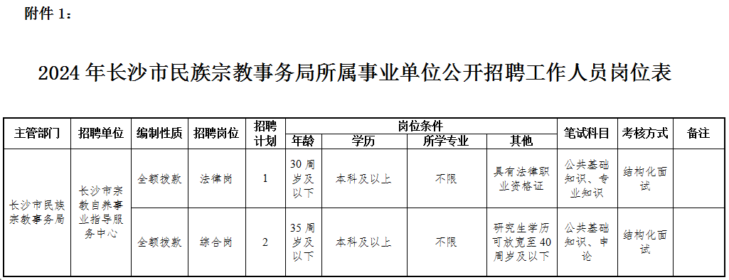 附件:《2024年长沙市民族宗教事务局所属事业单位公开招聘工作人员岗位表》