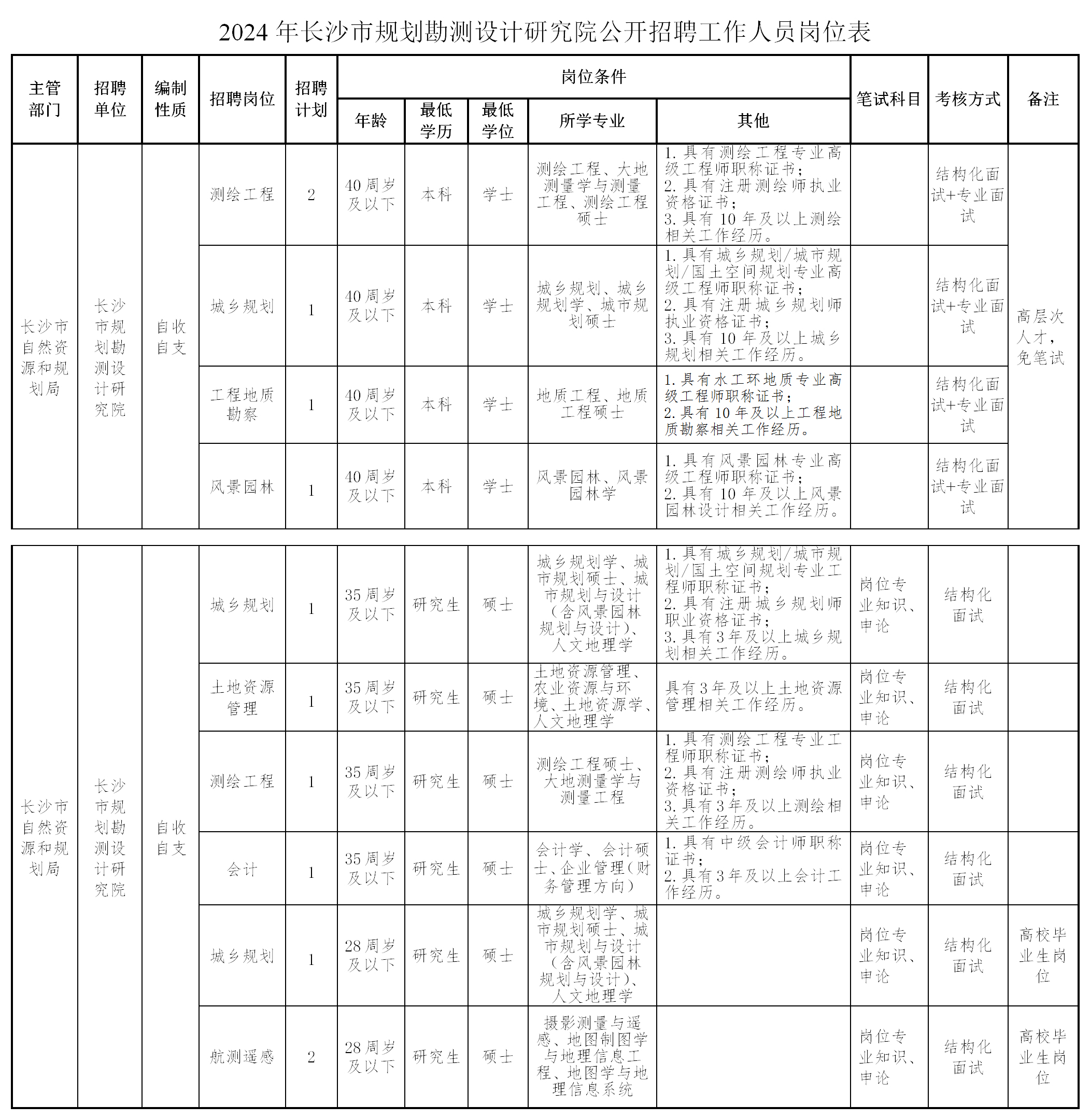 1.2024年长沙市规划勘测设计研究院公开招聘工作人员岗位表