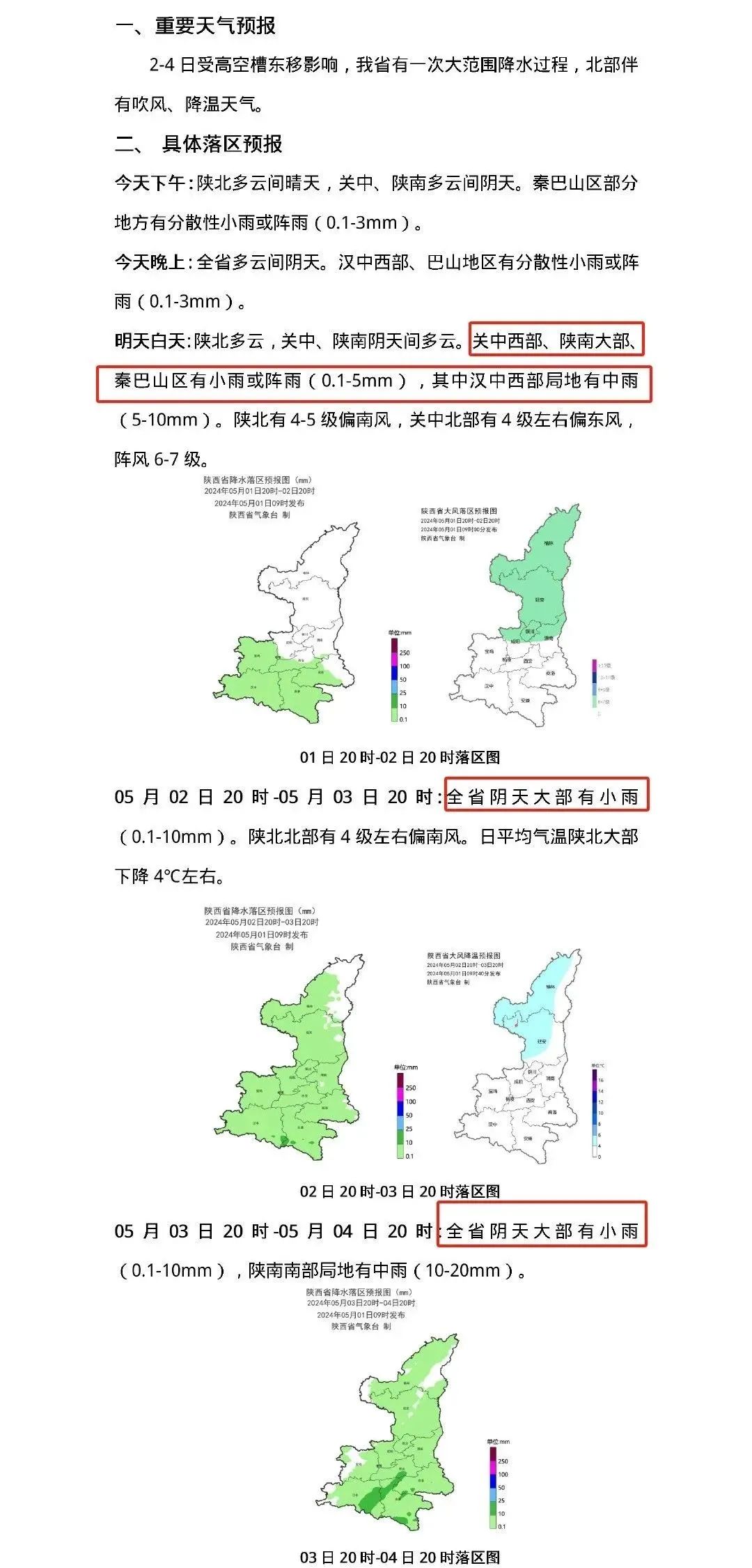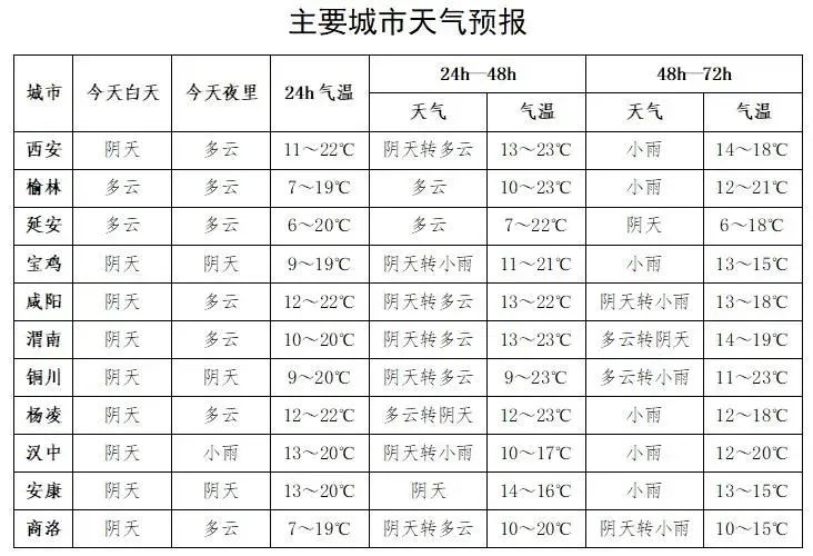 3日:全省阴天。全省大部有小雨(0.1~10毫米)。陕北有4级左右偏南风,阵风可达6级。